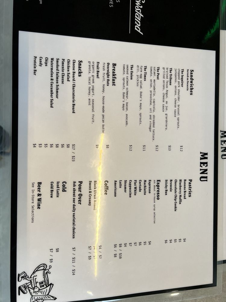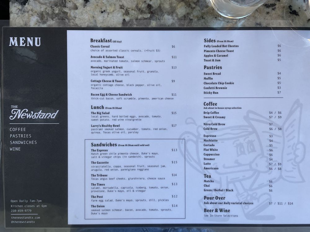 The Newstand in San Antonio, TX, offers a cozy atmosphere with friendly baristas and a menu featuring fresh, high-quality ingredients. They serve a variety of comfort food, baked goods, coffee, sandwiches, and breakfast items. Highlights include the Times sandwich, packed with flavorful meats and fresh veggies on homemade bread, and the Americano coffee, smooth and strong. The menu also offers options like avocado toast, cottage cheese and toast, and brunch sandwiches. The restaurant has a clean, laid-back vibe, perfect for a casual meal or coffee break. The staff is friendly and helpful, adding to the positive experience. The prices are slightly high, but the quality and quantity of the food justify the cost. Overall, The Newstand is a must-visit spot for delicious food and a relaxing atmosphere.
